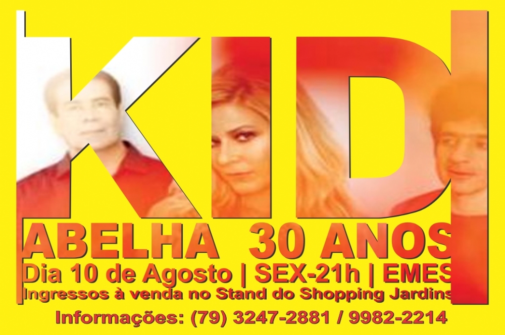Paula Toller, George Israel e Bruno Fortunato comemoram trinta anos de Kid Abelha e levam os grandes hits da banda, dos anos 80, 90 e 2000, para os fãs da cidade de Aracaju no dia 10 de agosto, às 21h no Espaço Emes.