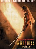 (Kill Bill Vol. 2). EUA, 2004. Direção e Roteiro de Quentin Tarantino. Produção de Lawrence Bender. Direção de Fotografia: Robert Richardson. Desenho de Produção: David Wasco, Cão Jui Ping. Música de RZA e Robert Rodriguez. Editor: Sally Menke. Cia Produtora: A Band Apart, para a Miramax Film. Distribuição no Brasil: Lumiere. 127m, 16 anos. Elenco: Uma Thurman, David Carradine, Michael Madsen, Daryl Hannah, Gordon Liu, Michael Parks, Bo Svenson, Jeannie Epper e Perla Haney Jardine.