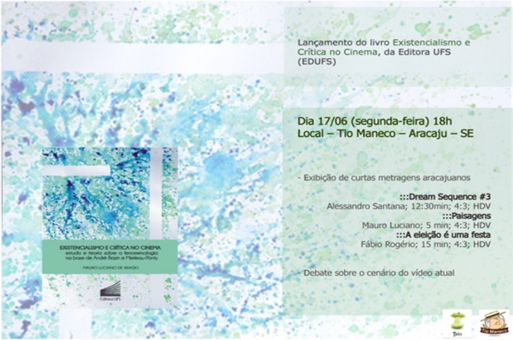 O livro “Existencialismo e Crítica no Cinema” será lançado no dia 17/16, a partir das 18h, no Tio Maneco. Na ocasião, haverá debate sobre o cenário do vídeo atual com o prof. Romero Venâncio e com o realizador Alessandro Santana. O evento contará também com exibição de curtas metragens aracajuanos “Dream Sequence #3”, “Paisagens” e “A eleição é uma festa”.