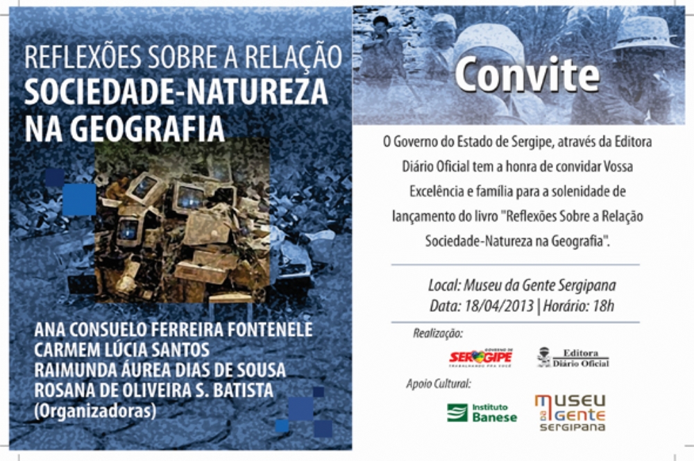 A Editora Diário Oficial vai lançar no dia 18 de abril, o livro “Reflexões sobre a relação sociedade-natureza na Geografia”. Organizado por Ana Consuelo Ferreira Fontenele, Carmem Lúcia Santos, Raimunda Áurea Dias de Sousa e Rosana de Oliveira S. Batista, o livro objetiva despertar uma leitura crítica da relação sociedade-natureza através do contexto em que a globalização é apresentada como único modelo de desenvolvimento, possibilitando reflexões sobre a separação entre homem e natureza, no sentido de por em questão se tal dicotomia deve ser perpetuada.