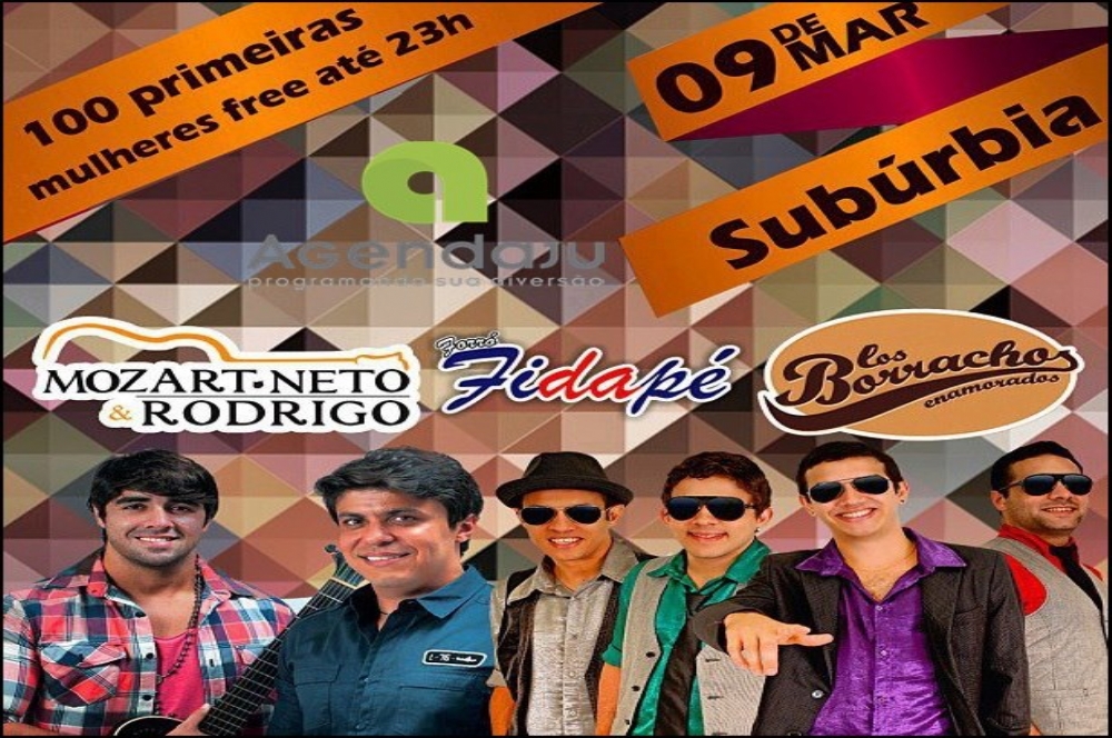 No dia 9 de março, a casa de show Suburbia recebe a banda alagoana Los Borachos Enamorados. A festa terá também a dupla Mozart Neto & Rodrigo e a banda Forró Fidapé. As 100 primeiras mulheres que chegarem até às 23h terão entrada liberada.
