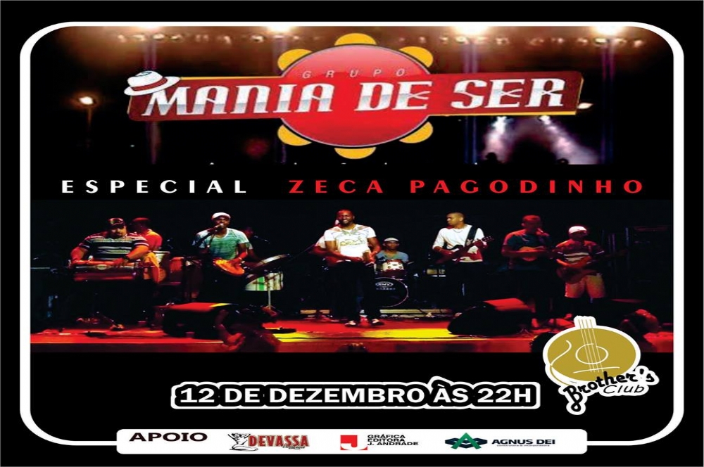 O Brother’s Club receberá pela primeira vez o grupo “Mania de Ser” para o projeto “Isso sim é samba”. O grupo realizará um tributo ao mestre “Zeca Pagodinho”.