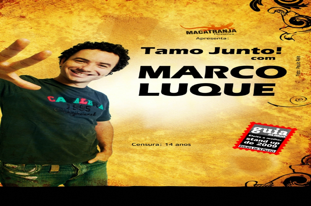 O ator, humorista e apresentador do programa CQC, da TV Band, Marco Luque, apresenta seu stand up Tamo Junto nos dias 13 e 14 de julho, 21h e 20h, respectivamente, no Teatro Tobias Barreto.
