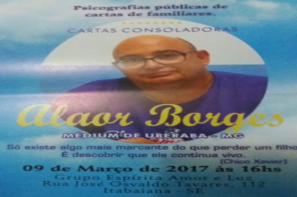 O médium Alaor Borges fará uma sessão de psicografia em Itabaiana no dia 9 de março. O evento acontece a partir das 19h30 no Grupo Espírita Amor e Luz.