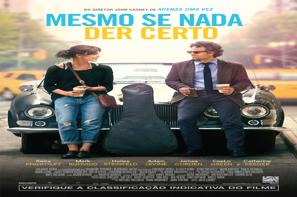 (Begin Again). EUA, 2013. Direção e roteiro de John Carney. Produção de eTobin Armburst e Anthony Bregman. Música de Gregg Alexandre. Direção de Fotografia: Yaron Orbach. Edição de Andrew Marins. Desenho de Produção: Chad Keith. Direção de Arte: Anne Goetz. 104m, 12 anos. Distr. nos cinemas: Imagem Filmes. Com Keira Knightley, Mark Ruffalo, Adam Levine, Hailee Steinfeld, Aya Cash, James Corden, Yasin Bey e Cee-Lo Green.