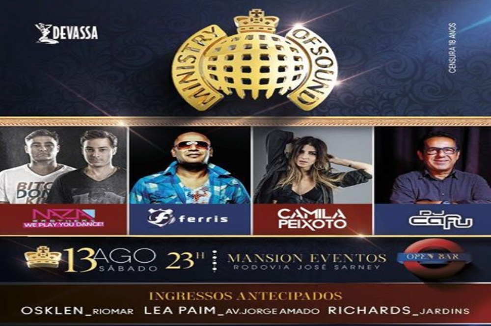 Mais uma vez Aracaju receberá o maior selo de música eletrônica do mundo, a Ministry Of Sound. Prepare-se para uma balada inesquecível e glamurosa, comandada por excelentes DJ's, com muita gente bonita, animada e um sistema Open Bar de primeira.