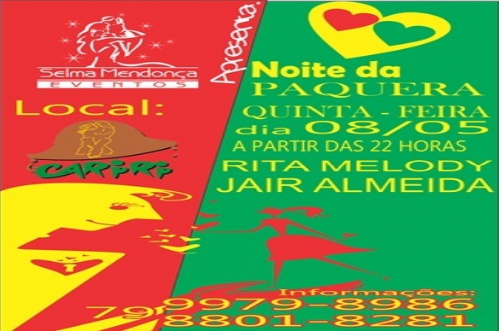 A Noite da Paquera acontece na quinta-feira, 8, a partir das 22h, na Casa de Forró Cariri. O valor da entrada é 20 com mesas livres. Informações através dos telefones (79) 9979 8986 ou 8801 8281.
