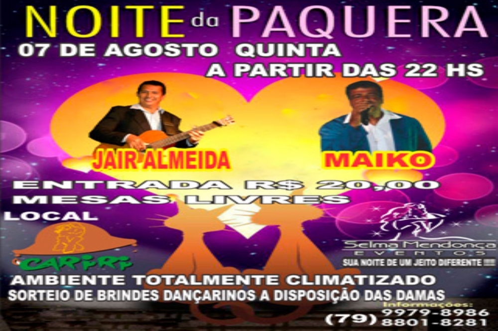 No dia 7 de agosto haverá a “Noite da Paquera” a partir das 22h no Bar e Restaurante Cariri. A entrada custa R$ 20 reais e mesas livres.