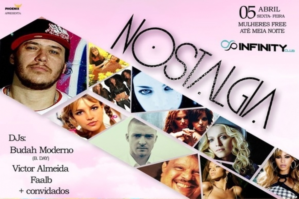 Na sexta, dia 05 de Abril, a partir das 22h acontece a terceira edição de sucesso da festa Nostalgia, muita gente bonita vai invadir a pista para dançar os hits que bombaram nas décadas passadas e é claro as atuais também. Na line, os Djs Budah Moderno, Victor Almeida, Fall B, além de convidados super especias, comandarão as pick-ups nesta noite de curtição. As mulheres são Free até a meia noite.