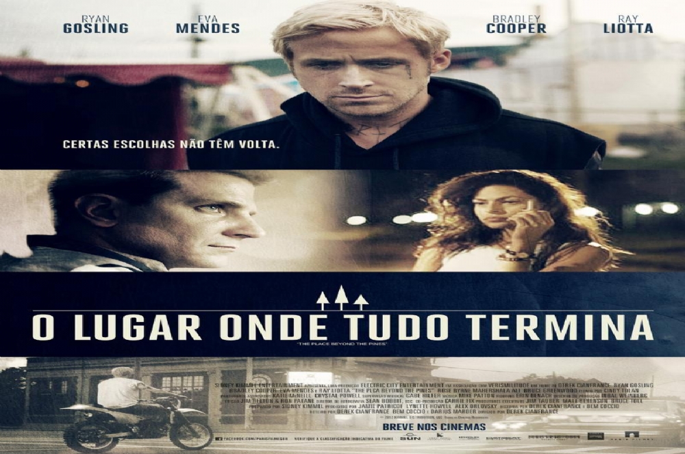 (The Place Beyond the Pines). EUA, 2013. Direção de Derek Cianfrance. Roteiro de Ben Coccio, Darius Marder e Cianfrance. Produção de Alex Orlovski, Jamie Patricof, Lynette Howell, Sidney Mike Patton. Direção de Fotografia: Sean Bobbit. Montagem de Jim Helton e Ron Patane. Música de Mike Pattos. 140m, 16 anos. Cia. Produtora: Electric City Entertainment, Hunting Lane Films, Pines Productions, Sidney Kimmel Entertainment, Silverwood Films, Verissimilitude. Distr. No Brasil: Paris Filmes. Com Ryan Gosling, Bradley Cooper, Bruce Greenwood, Ben Mendelsohn, Eva Mendes, Harris Yulin, Ray Liotta, Rose Byrne.
