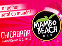 O melhor Natal do Mundo ocorre neste sábado, 24, a partir das 23h, no Mambo beach Bar. As bandas Chicabana, Samba 40 Graus e DJ Cello comandarão a festa. Você não pode perder! O Mambo Beach Bar funciona onde ficava o Marujo.