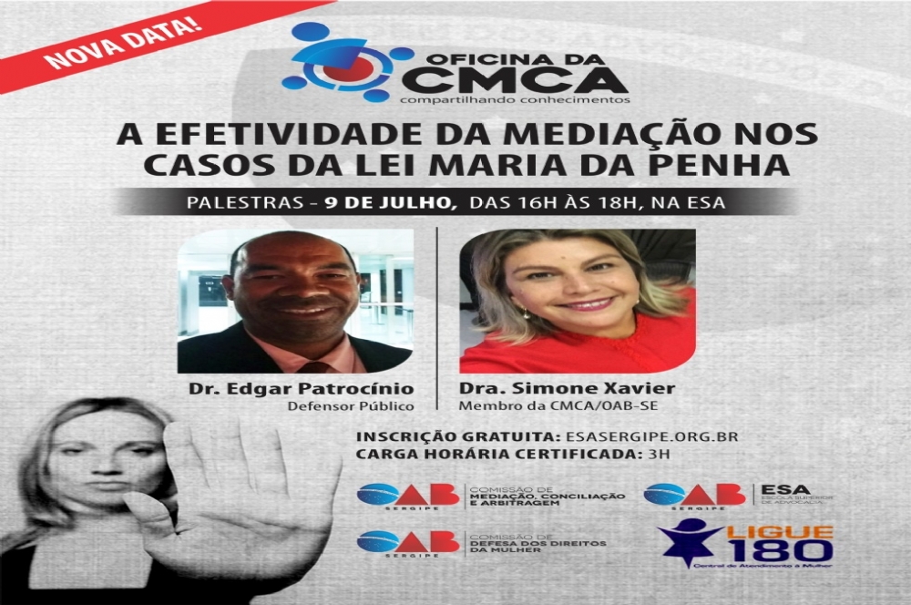 A Ordem dos Advogados do Brasil, em Sergipe, realizará no dia 9 de julho, a oficina jurídica da Comissão de Mediação, Conciliação e Arbitragem. O evento é gratuito e aberto ao público.