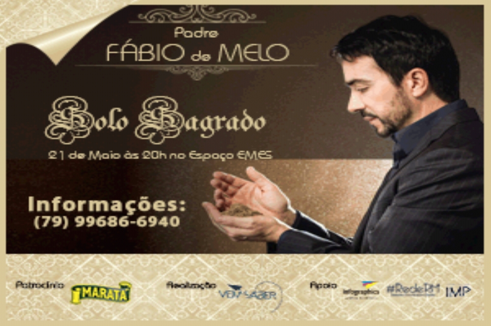 A Vem Saber Consultoria e Eventos traz a Aracaju, no dia 21 de maio, o Padre Fábio de Melo com o show “Solo Sagrado”. O evento acontece no Espaço Emes com sessões às 17h e 20h. Os ingressos podem ser comprados no Compre Ingressos e no stand de vendas no Shopping Jardins. Informações: (79) 9 9686-6940 / (79) 9 8819-6158 / (79) 9 9633-2588