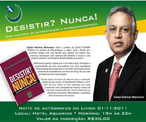 O Conselho de Jovens Empreendedores de Sergipe (CJE) promove em Aracaju a Noite do Empreendedorismo. O objetivo é promover a representatividade e o evento contará com a participação do empresário Saidul Raman Mohamed, que veio para o Brasil exialdo do Moçambique com a família e a quantia de 400 dólares. Aqui ele fundou a Quality Mark Editora, que hoje é referência em recursos humanos, manutenção, qualidade e produtividade e finanças.