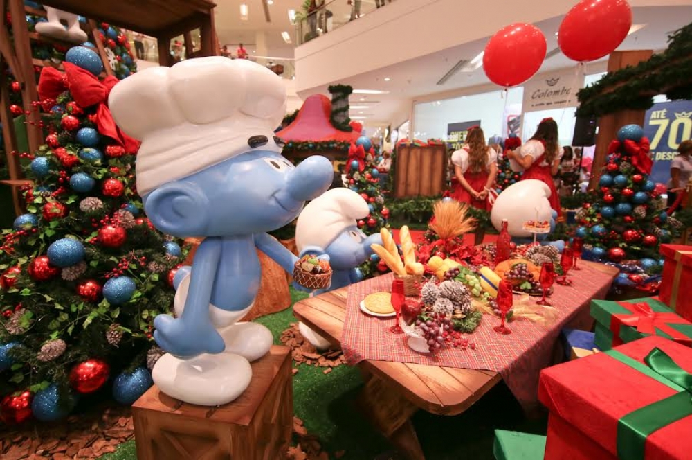 O quê? Chegada do Papai Noel com musical infantil da Blitz Kids, presença dos Smurfs, decoração temática com brinquedos e atividades interativas.