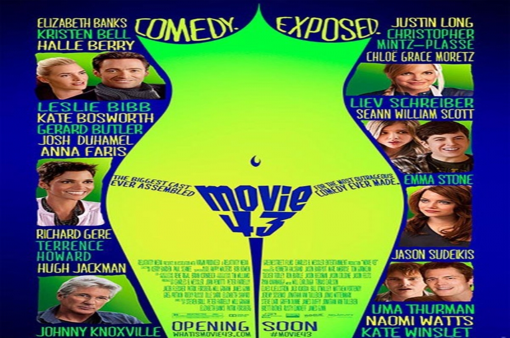 (Movie 43). EUA, 2013. Direção de Steven Brill, Peter Farrelly, Will Graham, Steve Carr, Griffin Dunne, James Duffy, Jonathan van Tulleken, Elizabeth Banks, Patrik Forsberg, Brett Ratner, Rusty Cundieff, James Gunn. Roteiro de Will Carlough, Tobias Carlson, Jacob Fleisher, Patrick Forsberg, Will Graham, James Gunn, Claes Kjellstromn, Jack Kukoda, Bill O´Malley, Matthew Porotenoy, Greg Pritikin, Rocky Russo, Olle Sarri, Elizabeth Shapiro, Jeremy Sosenko, Jonathan van Tulleken e Jonas Wittenmark. Produção de Charles B. Wessler, John penotti, peter Farrelly, Ryan Kavanaugh. Direção de Fotografia: Frank G. Marco, Steve Gainert, William Rexer, Tim Suhrstedt. Edição de Debra Chiate, Jon Corn, Patrick J. Don Vito, James Duffy, Craig Herring, Jason MacDonald, Sam Seig, Cara Silverman, Sandy S. Solowith, Hakan Warn, Paul Zucker. Música de Billy Goodrum. Desenho de Produção: Russel Barner, Tim Burgin, Toby Corbett, Robb Wilson King, Arian Jay Vetter. 94m, 16 anos. Cia. Produtora: Relatvity Media, Virgin, Greenstreet Films. Distr. No Brasil: Imagem Filmes. Com Elizabeth Banks, kristen Bell, Hally Berry, Leslie Bib, Kate Bosworth, Gerard buttler, Bobby Cannavale, Common, Kieran Culkin, Josh Duhamel, Anna Faris, Richard Gere, John Hodgman, Terrence Howard, Hugh Jackman, Greg Kinnear, Johnny Knoxville, Justin Long, Stephen Merchant, Christopher Mintz-Plasse, Chloe Grace Moretz, Chris Pratt, Dennis Quaid, Live Schreiber, Sean William Scott, Emm Stone, Jason Sudeikis, Uma Thurman, Naomi Watts, Kate Winslett.