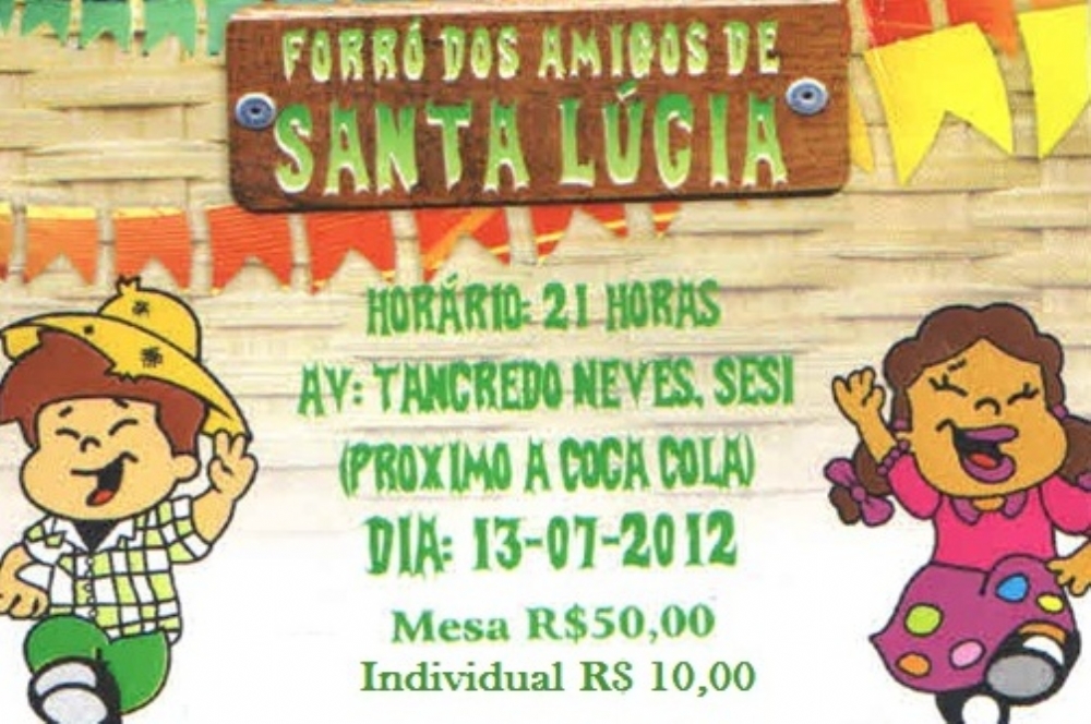 A paróquia Santa Lúcia está realizando o Forró dos Amigos de Santa Lúcia, com o objetivo arrecadar fundos para a construção do salão paroquial. O arraial vai acontecer no clube do Sesi, próximo a Coca-Cola, no dia 13 de julho, às 21h.