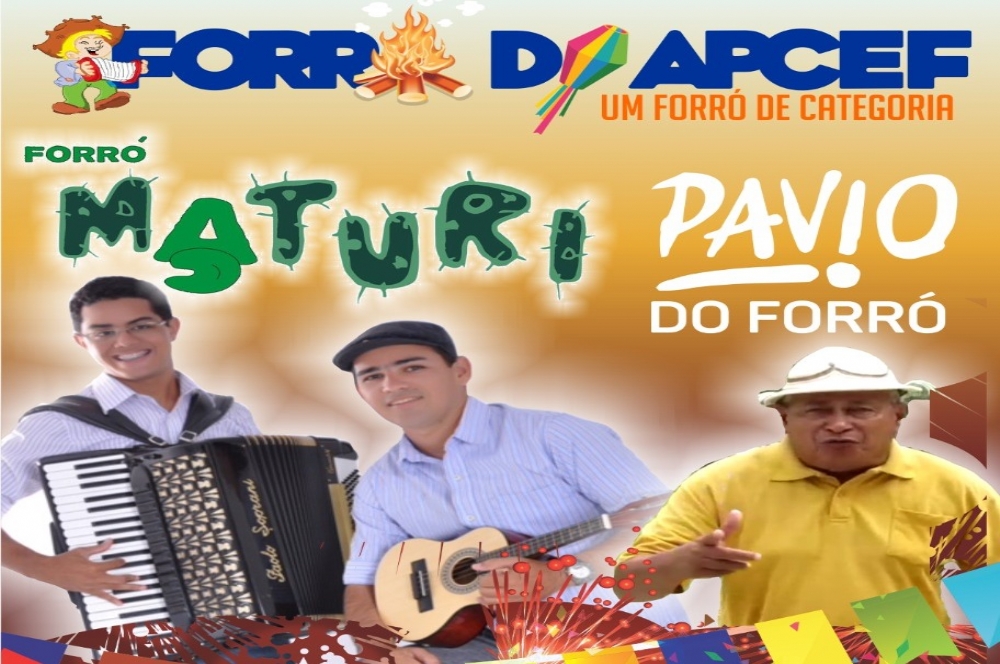 Neste sábado, 2 de junho, a partir das 20h, a Associação do Pessoal da Caixa Econômica Federal (APCEF) promove o Forró de Categoria com as bandas Pavio do Forró e Maturi.