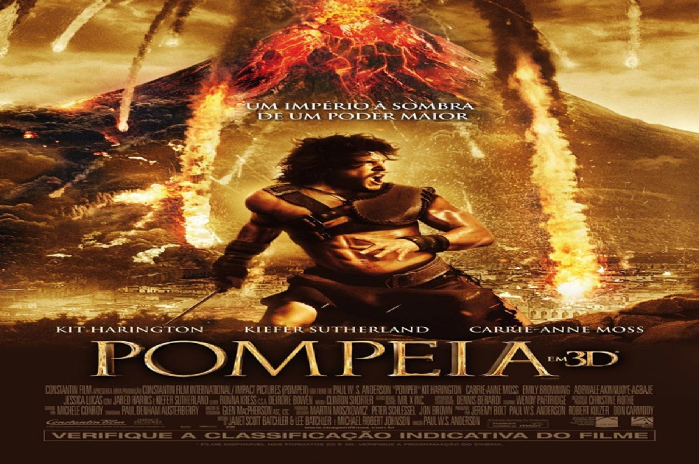 (Pompeii). EUA/Alemanha, 2013. Direção de Paul W. S. Anderson. Roteiro de Janet Scott Batcher, Michael Robert Johnson e Lee Batchler. Produção de Anderson, Jeremy aBolt, Don Carmody, Robert Kulzer, Martin Moszkowicz. Direção de Fotografia: Glen McPherson. Música de Clinton Shorter. Desenho de Produção: Paul D. Austerberry. 12 anos, 105m. Cia. Produtora: Constantin Film Produktion, FilmDistrict e Impact Pictures. Distr. no Brasil: Imagem Filmes. Com Kit Harington, Carrie-Anne Moss, Emily Browning, Adewale Akinnuoye, Jessica Lucas, Jared Harris, Kiefer Sutherland, Rebecca Eady, Jean Frenette, Ron Kennell, Currie Graham, Ben Lewis, Alain Moussi.