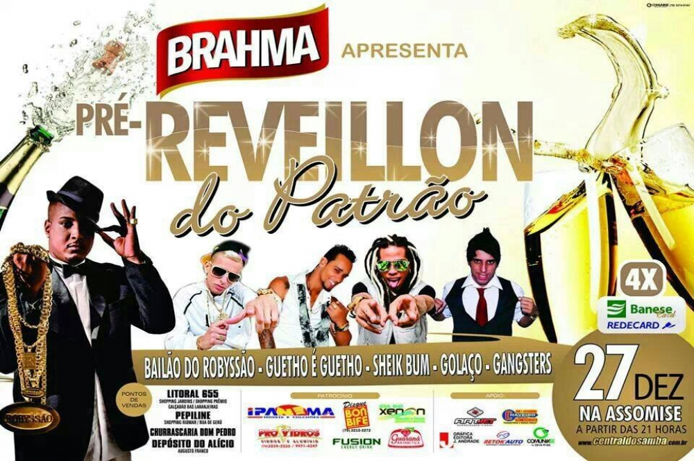 O Pré-Réveillon do Patrão acontece no dia 27, a partir das 21h, na Assomise (Culbe dos Oficiais no Augusto Franco) com Bailão do Robyssão, Guetho é Guetho, Sheik Bum, Golaço e Gangsters.