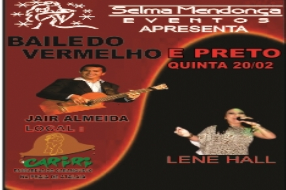 Selma Mendonça Eventos realizará o Baile do Vermelho e Preto na quinta-feira, 20, na Casa de Forró Cariri. O evento acontece a partir das 22h e a entrada custará R$ 20. Jair Almeida e Lene Hall comandam a festa. Informações podem ser obtidas através dos telefones (79) 9979-8986 ou 88018281.