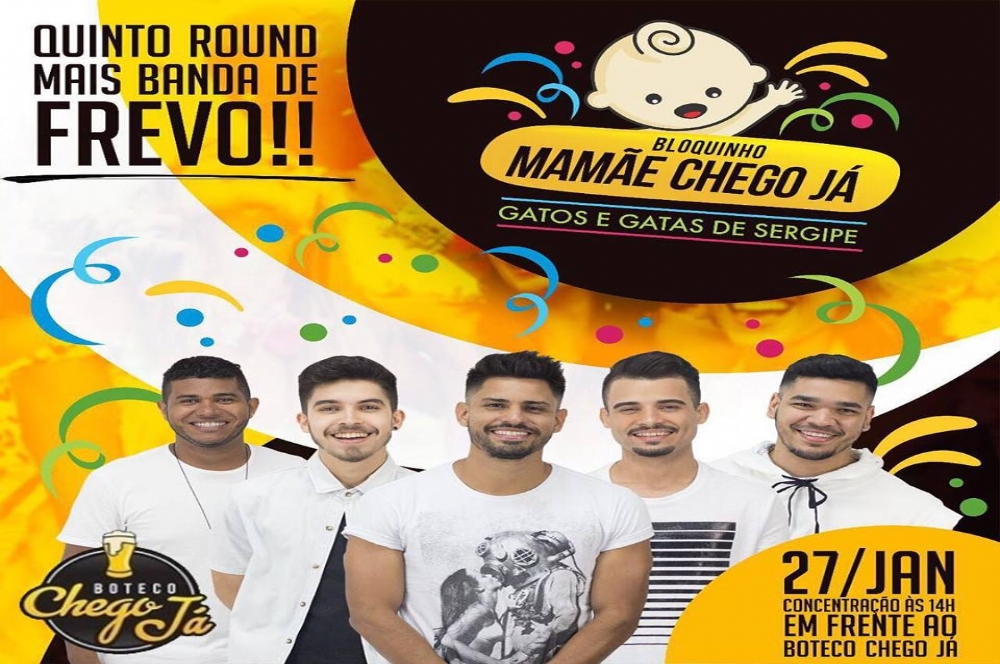 O grupo sergipano Quinto Round vai comandar o bloco ‘Mamãe Chego Já’. O evento acontece no dia 27 de janeiro, a partir das 14h, no Boteco Chego Já, que fica na rua Dr. Augusto César Leite, n 48, bairro Grageru. A festa também contará com banda de frevo para fazer os foliões entrar no clima de carnaval.