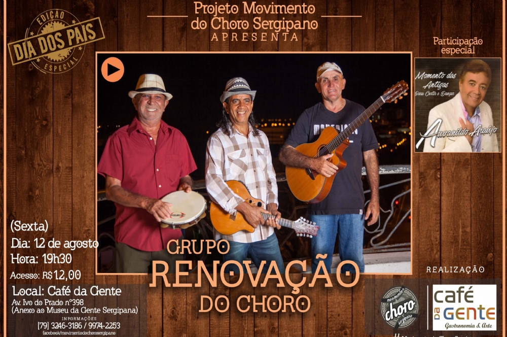 O tradicionalíssimo ‘Grupo Renovação do Choro’ fará um show em homenagem aos pais e aos Mestres Jacob do Bandolim e Egnaldo do Bandolim com a participação especial do cantor Auvanildo Araújo.