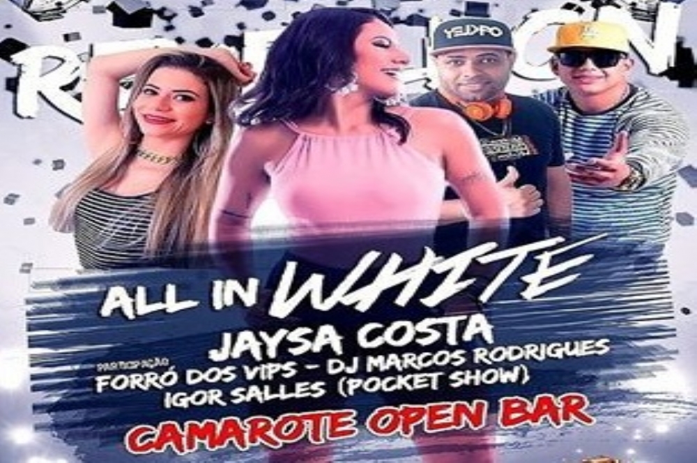 Jaysa Costa, Forró dos Vips, Igor Salles e Dj Marcos Rodrigues são as atrações do Réveillon All In White do Armazém Avenida. No local, a regra é se vestir de branco e cair na diversão.