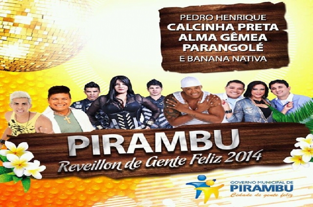 O Réveillon de Gente Feliz da Pirambu terá as seguintes atrações: Pedro Henrique, Calcinha Preta, Parangolé, Alma Gêmea e Banana Nativa. O município de Pirambu está localizado a 63 km de Aracaju.