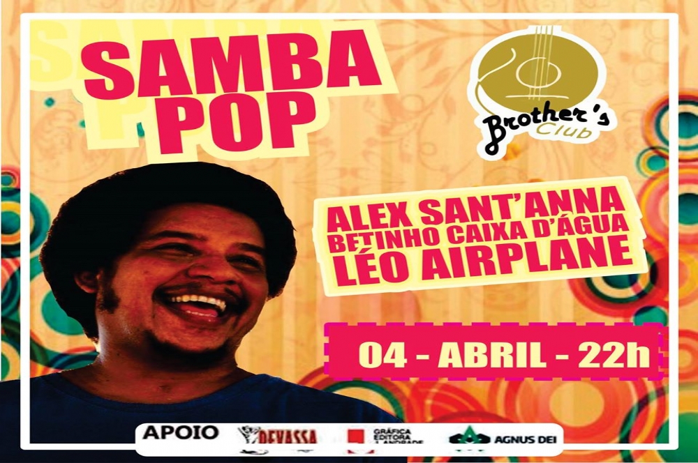Neste sábado, 4, Alex Sant’Anna, Betinho Caixa D’Água e Léo Airplane comandam o “Samba Pop”. O evento acontece a partir das 22h no Brother’s Club. Informações através do telefone (79) 9988 1922.