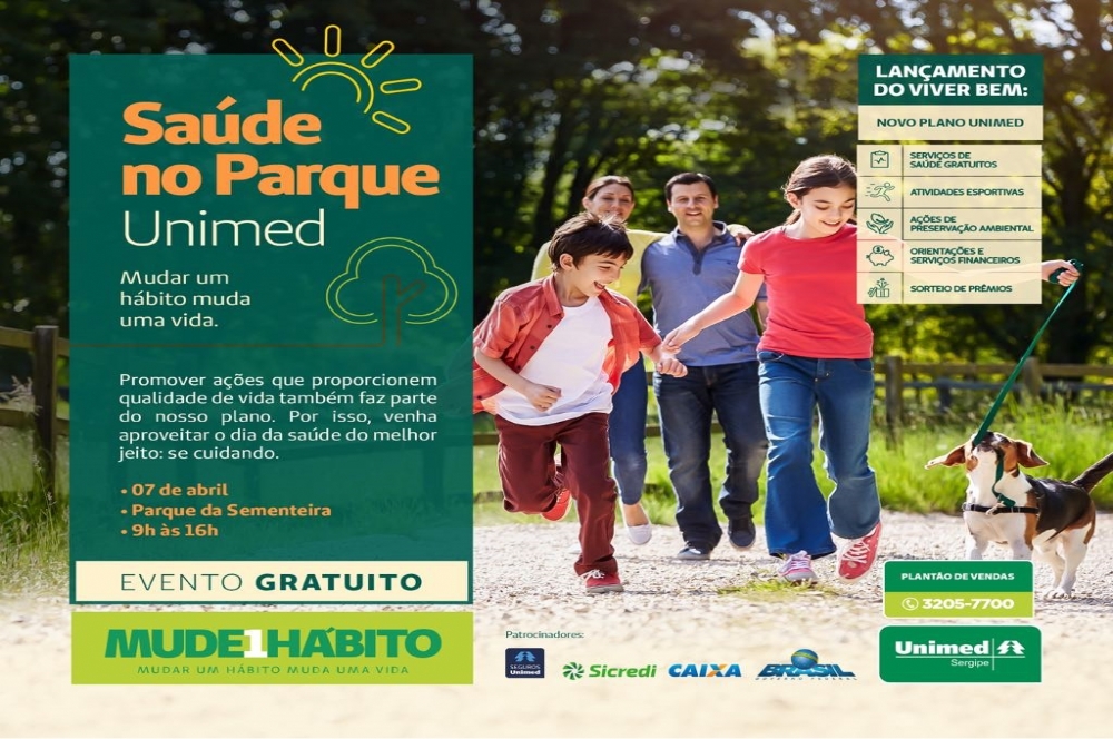 A Unimed Sergipe comemora o dia mundial da saúde convidando a sociedade sergipana para mudar um hábito no parque da sementeira, próximo dia 07de abril. O evento é voltado para toda a família e tem como objetivo incentivar a prática de exercícios físicos e promover a qualidade de vida.