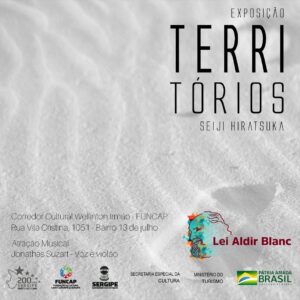 Dando continuidade às atividades com artistas selecionados na Lei Aldir Blanc (LAB), a Fundação de Cultura e Arte Aperipê (Funcap) estará realizando na próxima terça-feira, 19, às 10h, a abertura da exposição fotográfica ‘Territórios’, do artista Seiji Hiratsuka, no Corredor Cultural Wellington Santos “Irmão”, localizado na sede da Funcap. A abertura contará com a música de Jonathas Suzart, também artista dos editais da LAB, terá entrada gratuita, seguindo todos os protocolos de segurança.