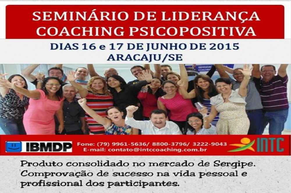 O INTC Instituto Nacional de Treinamento Comportamental e o IBMDP – Instituto Brasileiro Motivacional de Desenvolvimento de Pessoas realizarão, em Aracaju, mais uma turma do Maravilhoso Seminário de Coaching Psicopositivo.