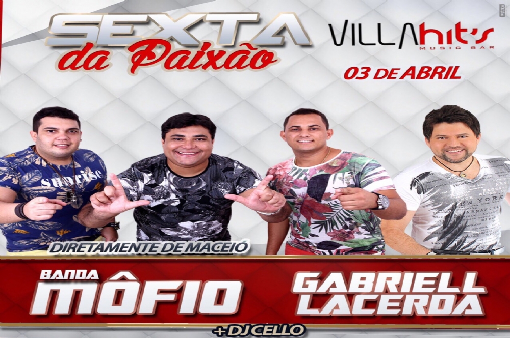 A sua sexta-feira da paixão promete muita animação no Villa Hits Music Bar. O cantor sertanejo Gabriell Lacerda e a banda alagoana Môfio não vão deixar ninguém ficar parado com direito a muito sertanejo e forró neste dia 3 de abril.