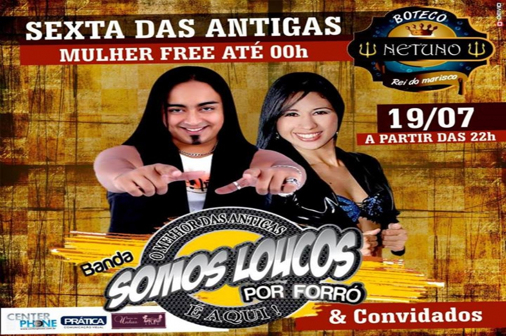 A banda Somos Loucos por Forró e convidados comandam a Sexta das Antigas no Boteco do Netuno. A festa acontece no dia 19 de julho, a partir das 22h. Até às 0h, as mulheres terão entrada liberada. Boteco do Netuno está localizado na Avenida Acrísio Cruz, nº 40, Praça da Imprensa.