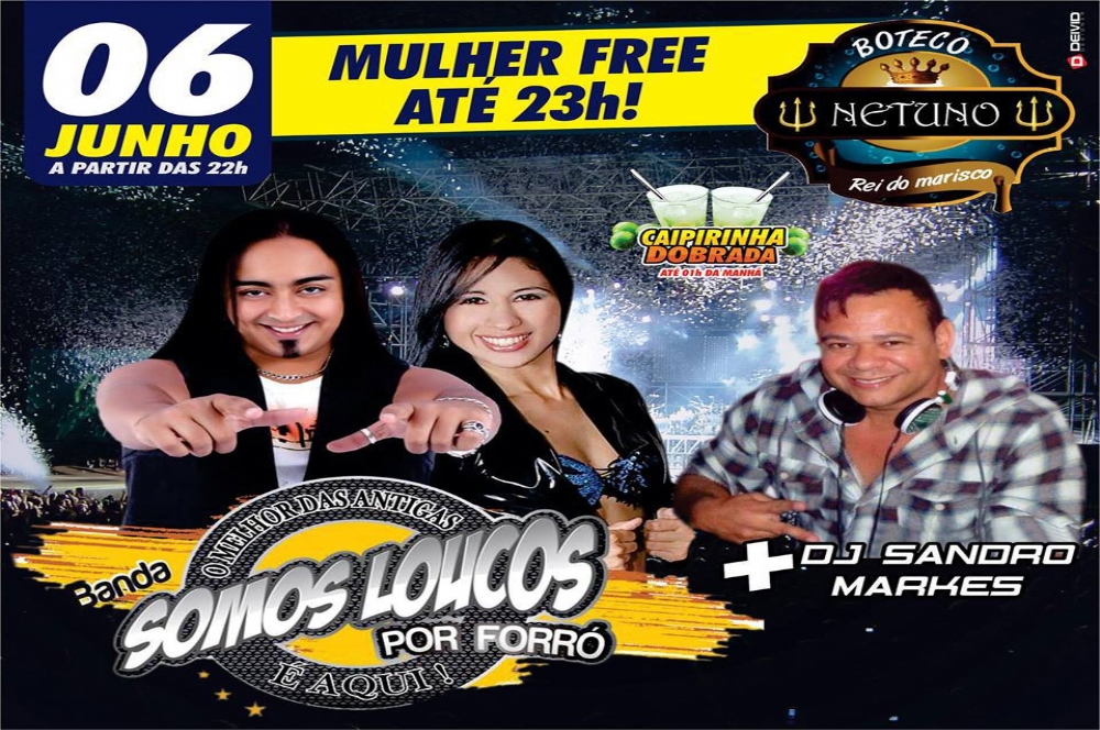 Nesta quinta-feira, 6, agitação no Boteco do Netuno ficará por conta da banda Somos Loucos por Forró e do Dj Sandro Markes. A festa acontece a partir das 22h e até 1h da manhã, a caipirinha será dobrada. A novidade é que a mulherada terá entrada liberada até às 23h. O Boteco do Netuno está localizado na Avenida Acrísio Cruz, nº 40, Praça da Imprensa.