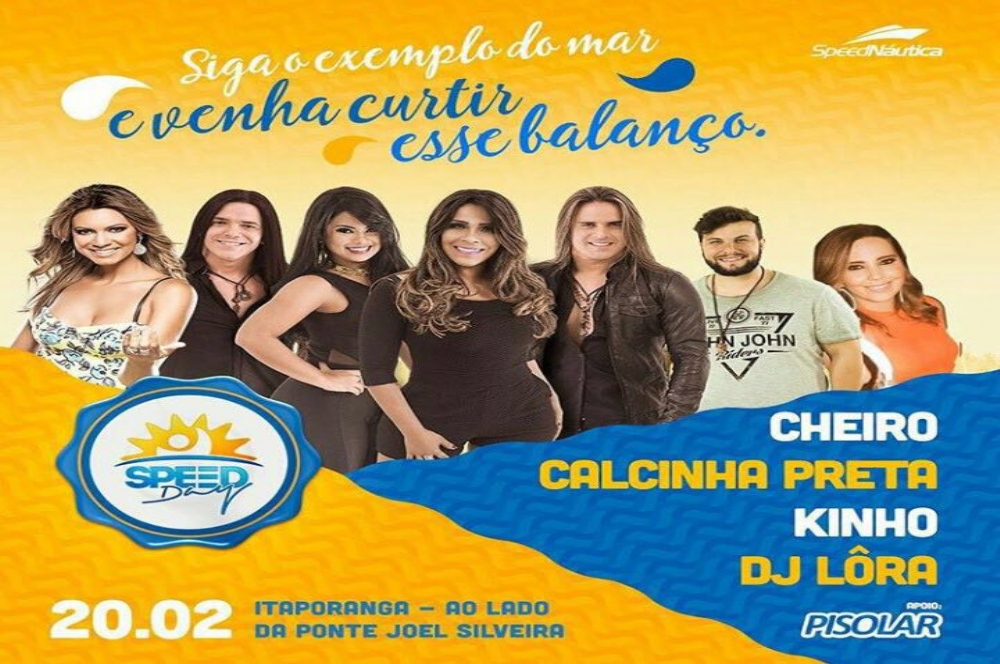 A quinta edição do Speed Day acontece no próximo dia 20 de fevereiro, a partir das 14h. Com megaestrutura montada ao lado da Ponte Joel Silveira, às margens do Rio Vaza Barris, a festa náutica já é famosa por reunir muita gente bacana, lanchas animadíssimas, barcos à vela e jet skis.