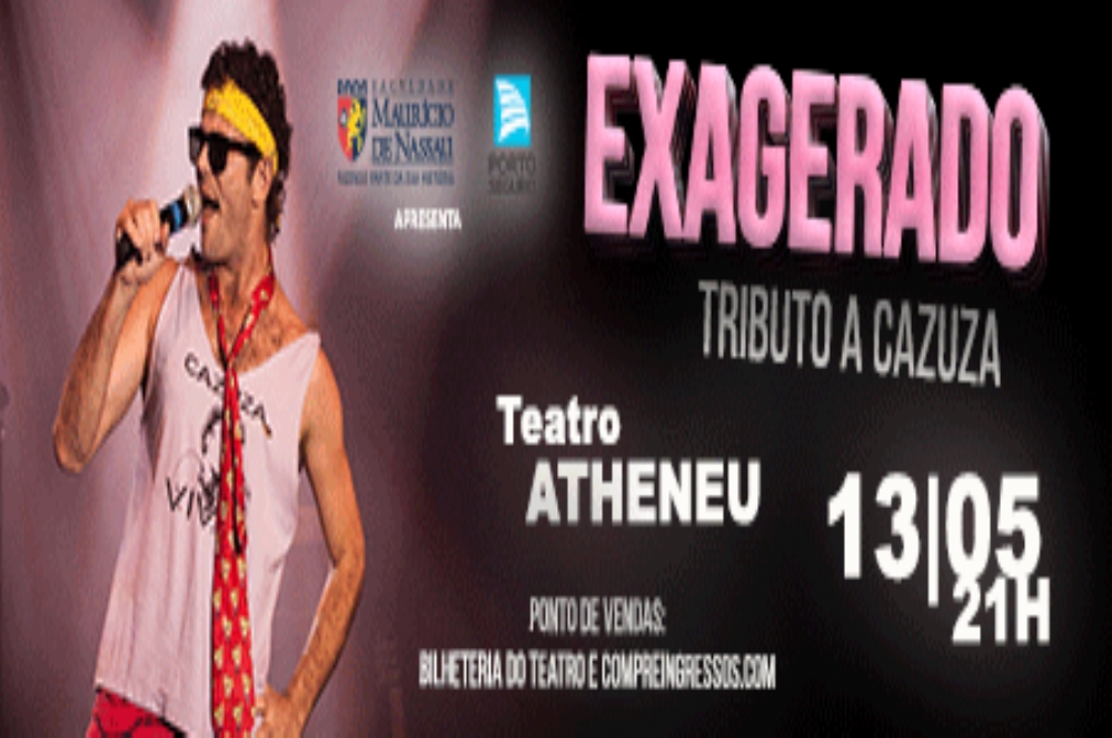 O Teatro Atheneu vai receber o espetáculo ‘Exagero – Tributo a Cazuza’ no dia 13 de maio. A apresentação acontece a partir das 21h e os ingressos estão disponíveis na bilheteria do Teatro Atheneu e no site Compre Ingressos.