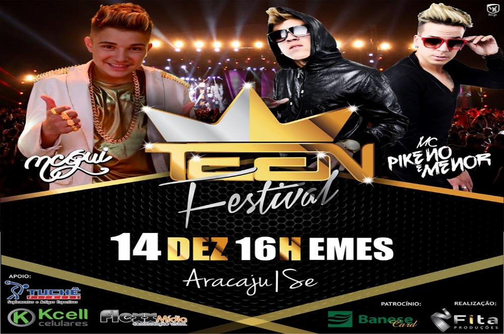 A 1ª edição do Teen Festival acontece neste domingo, 14, a partir das 16h, no Espaço Emes. MC Gui e o Mc Pikeno e Menor agitam a festa.