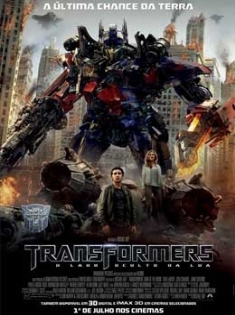 (Transformers: The Dark of the Moon). EUA, 2011. Direção de Michael Bay. Roteiro de Ehren Kruger, baseado nas figuras da Hastro. Produção de Ian Bryce, Tom de Santo, Lorenzo di Bonaventura, Don Murphy. Direção de Fotografia: Amir Mokri. Música de Steve Jablonsky. Montagem de Roger Barton, William Goldenberg e Joel Negron. Desenho de Produção: Nigel Phelps. Direção de Arte: Benjamin Edelberg, Kevin Ishioka, Richard L. Johnson. 154m, 12 anos. Cia Produtora: Hasbro, Di Bonaventura Pictures, para a Paramount Pictures. Distr. no Brasil: Parmount Pictures do Brasil. Com Shia LaBeouf, Josh Duhamel, John Turturro, Tyrese Gibson, Rosie Huntington-Whiteley, Patrick Dempsey, Kevin Duynn, Julie white, Ken Jeong, John Malkovich, Frances McDormand. Alan Tudyk, Glenn Morshower, Lester Speight.