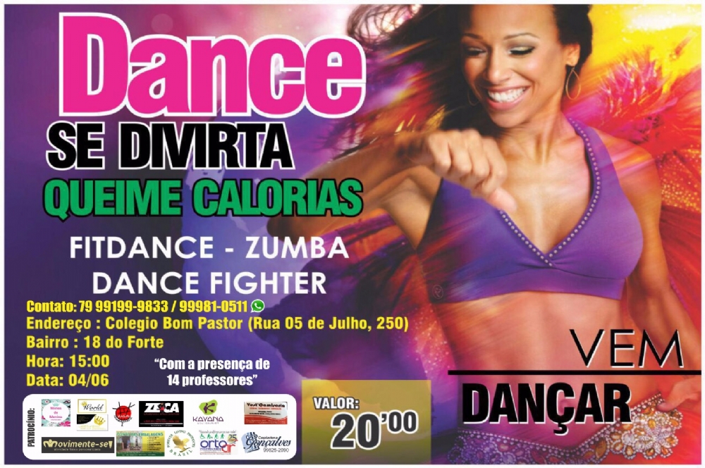 No dia 4 de junho, a partir das 15h, no Colégio Bom Pastor, acontece o Vem Dançar, um super aulão de Zumba, FitDance e Dance Fighter. O evento que pretende unir dança e saúde terá a presença de 14 professores.