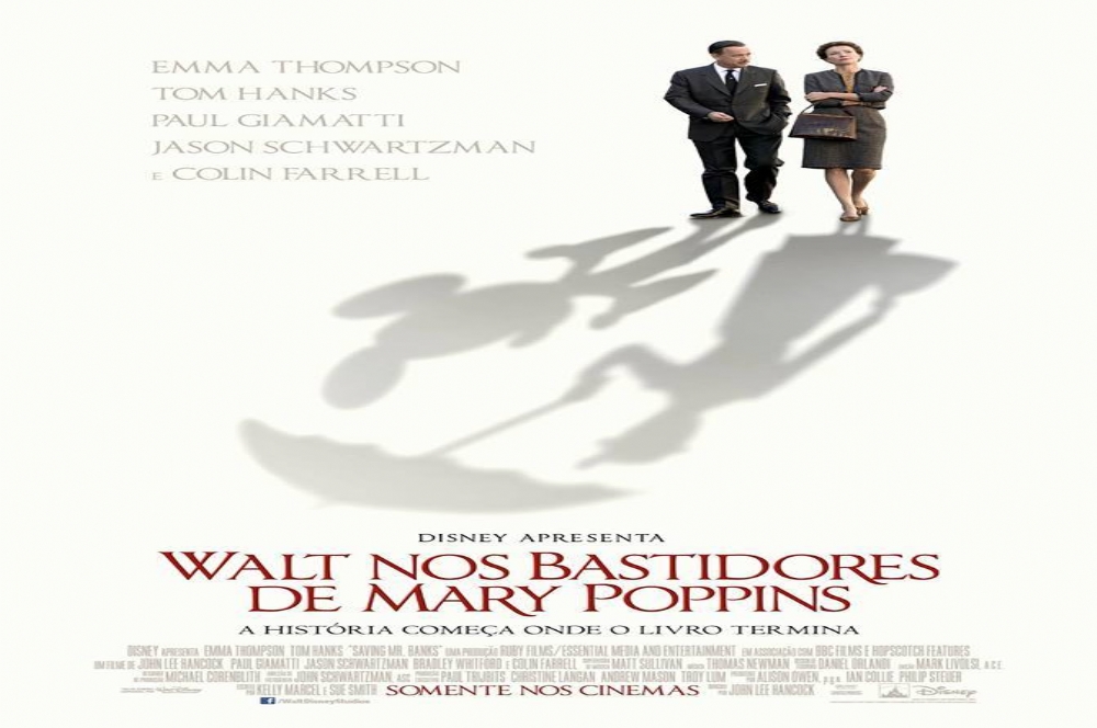 Walt nos Bastidores de Mary Poppins (Saving Mr. Banks). EUA, 2013. Direção de John Lee Hancock. Roteirode Kelly Marcel e Sue Smith. Direção de Fotografia: John Schwartzman. Produção de Ian Collie, Alison Owen e Philip Steuer. Música de Thomas Newman. Montagem de Mark Livolsi. Desenho de Produção: Michael Corenblith. Direção de Arte: Lauren E. Polizzi. Livre, 125m. Cia. Produtora: Ruby Films, Essential Media & Entertainment, BBC Films, Hopscotch Feaures, para a Walt Disney Pictures. Distr.no Brasil: Disney Filmes. Com Tom Hanks, Emma Thompson, Annie Rosie Buckley, Colin Farrell, Ruth Wilson, Paul Giamaratti, Bradley Whitford, Jason Schwatzman, Lily biham, Kathy Baker, Melanie Paxson, Andy McPhee, Rachel Griffits.