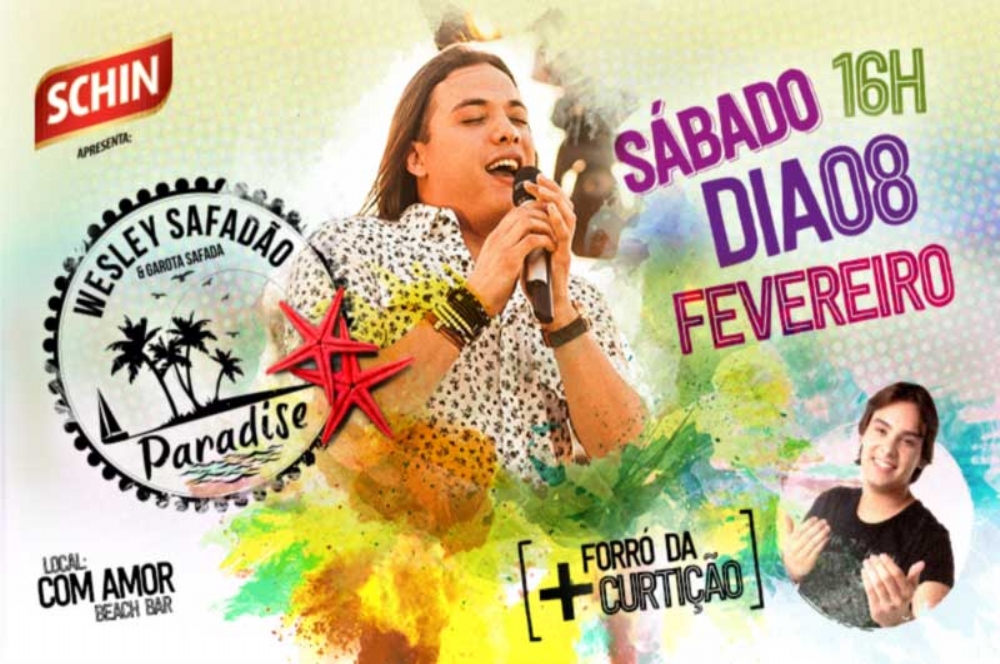 E para começar o mês de fevereiro com o pé direito, no dia 8, Wesley Safadão e Garota Safada vem no clima Paradise. O show vai rolar no clima já conhecido do Com Amor Beach Bar, na beira da praia e a partir das 16H, chegando o pôr-do-sol e garantindoo clima paradisíaco. Além da atração que dá nome a festa, o evento contará também com o show da banda Forró da Curtição! Ninguém vai querer ficar de fora dessa.