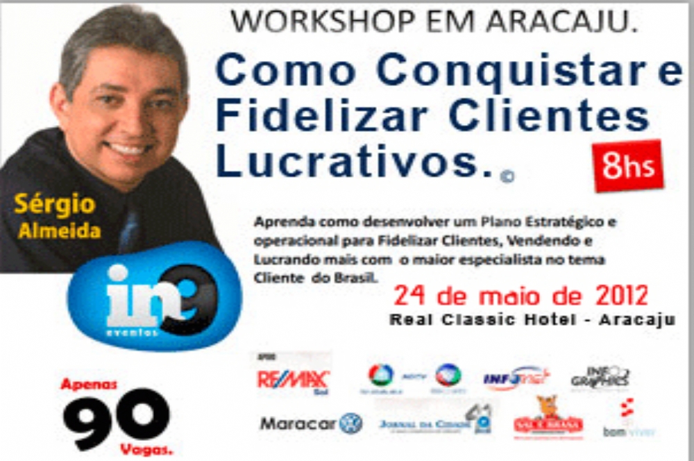 No próximo dia 24 de maio, das 13h30 às 21h30, acontece o workshop ‘Como conquistar e fidelizar clientes lucrativos’ com o palestrante Sérgio Almeida. Com o objetivo de capacitar os participantes na elaboração e desenvolvimento de um plano estratégico de encantamento do cliente nas empresas, tendo como meta, encantar, fidelizar, vender e consequentemente , lucrar mais, haverá um estudo de case completo, no qual os participantes aprenderão todas as etapas necessárias á construção de um plano.