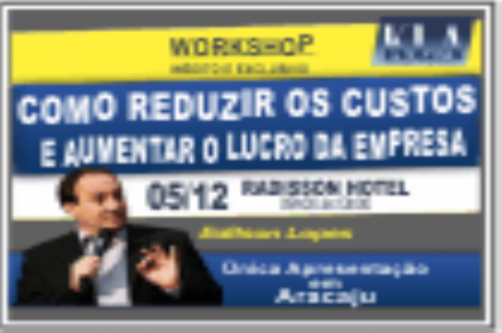 Na quinta-feira, 5 de dezembro, das 9h às 13h, no Radisson Hotel Aracaju, o Grupo K.L.A. Internacional estará realizando uma turma inédita e exclusiva do Workshop "Como Reduzir os Custos e Aumentar o Lucro da Empresa" com Edílson Lopes.