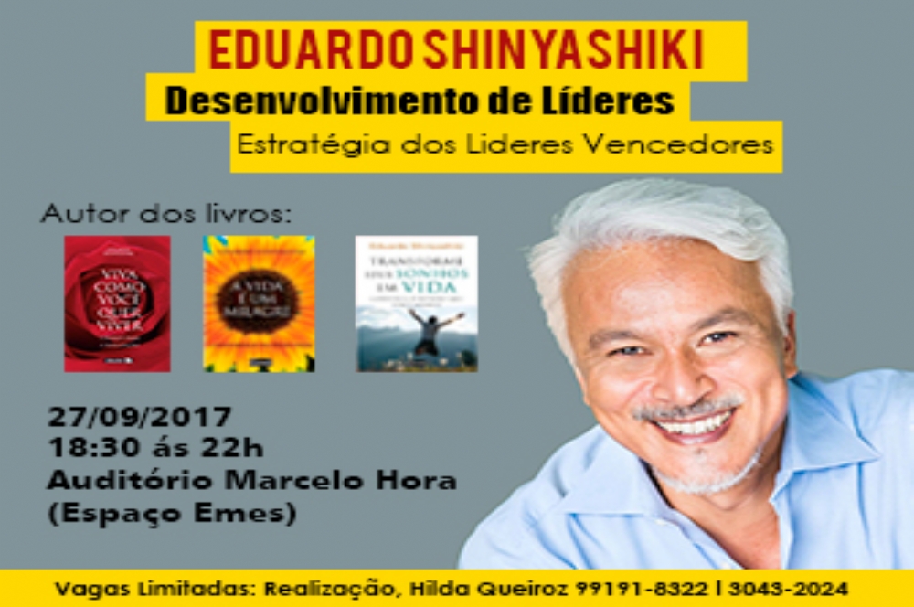 Aracaju vai receber o workshop ‘Desenvolvimento de Líderes – Estratégias de Liderança para o Mundo Real’. O evento acontece no dia 27 de setembro com o palestrante, consultor e escritor, Eduardo Shinyashiki.
