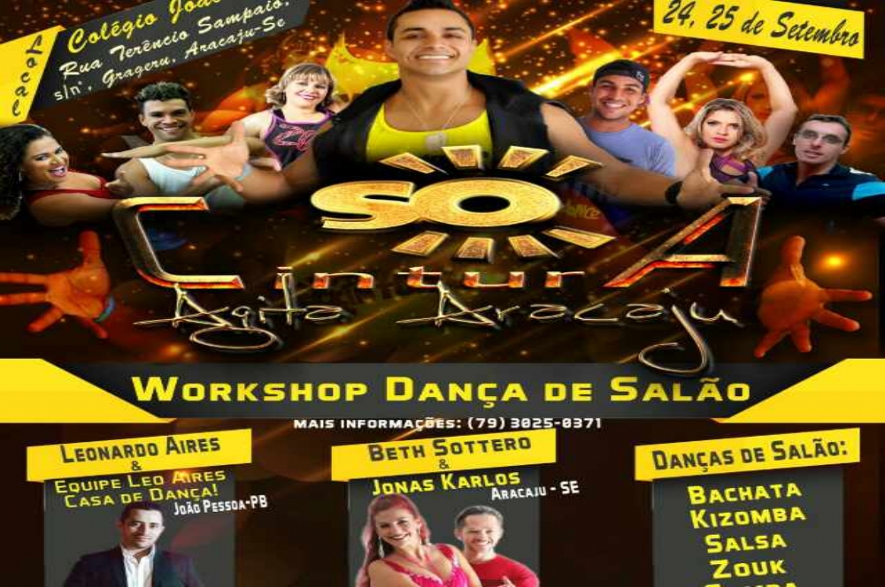 No próximo fim de semana, 24 e 25, acontece em Aracaju, a 2º edição do Workshop de Dança de Salão 'Só Cintura Agita Aracaju'. O evento começa este sábado, a partir das 8h e segue até às 19h. À noite, 21h, grande atração será o baile para os participantes colocarem em prática o que aprenderam durante o dia. Já no domingo, o Workshop continua das 8h às 13h e em seguida haverá um mega aulão de ritmos com Zumba e Fitdance para fechar com chave de ouro o 'Agita Aracaju'.