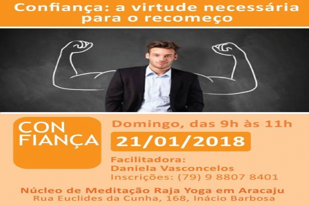 A ONG Brahma Kumaris em Aracaju traz um novo Workshop da Campanha ‘Escolha a Calma’. A facilitadora Daniela Vasconcelos falará sobre o tema ‘Confiança: a virtude necessária para o recomeço`. O evento acontece no domingo, 21, às 9h, no Núcleo de Meditação Raja Yoga. A participação é gratuita.