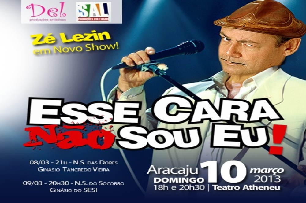 O novo show de Zé Lezin, Nairon Barreto, “Esse Cara Não Sou Eu”, chega a Sergipe neste mês de março. Além de apresentações em Aracaju no dia 10 de março no Teatro Atheneu sendo duas sessões, uma às 18h e outra às 20h30. O espetáculo também será apresentado nos municípios de Nossa Senhora das Dores no dia 08 de março, às 21h, no Ginásio Tancredo Vieira, e em Nossa Senhora do Socorro dia 09 de março, às 20h30, no Ginásio do SESI.