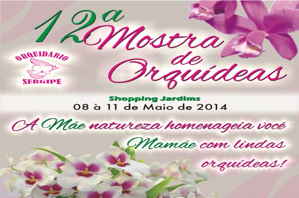 Uma ótima opção para escolher o melhor presente para o Dia das Mães, é a 12ª Mostra de Orquídeas no período de 08 à 11 de maio de 2014 no Shopping Jardins  com diversas espécies de orquídeas floridas. Com o tema “A Mãe natureza homenageia você Mamãe com lindas orquídeas”, entre as atrações do evento, os visitantes participarão de sorteio de lindas orquídeas e brindes do Orquidário Sergipe.
